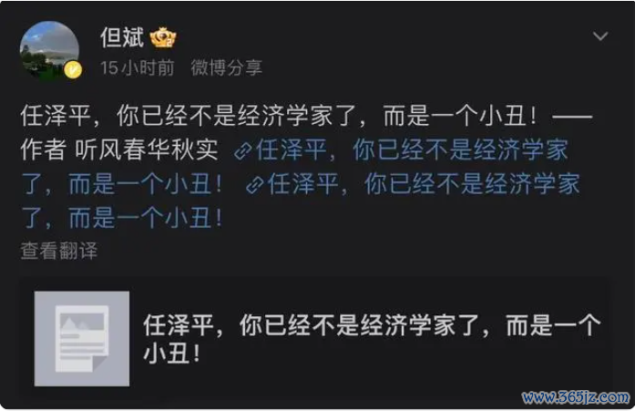 但斌引用自媒体标题,直呼:“任泽平,你已经不是经济学家了,而是一个小丑!”随后,任泽平在微博中称但斌为“但不群”。至此,双方从不指名地表达分歧观点,再到隔空互呛,甚至有了相互攻击的意味。