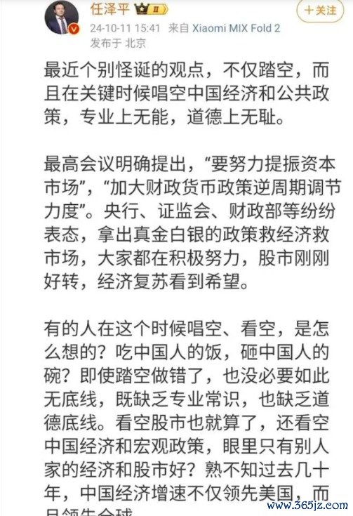 任泽平同日发文称:最近个别怪诞的观点,不仅踏空,而且在关键时候唱空中国经济和公共政策,专业上无能,道德上无耻。